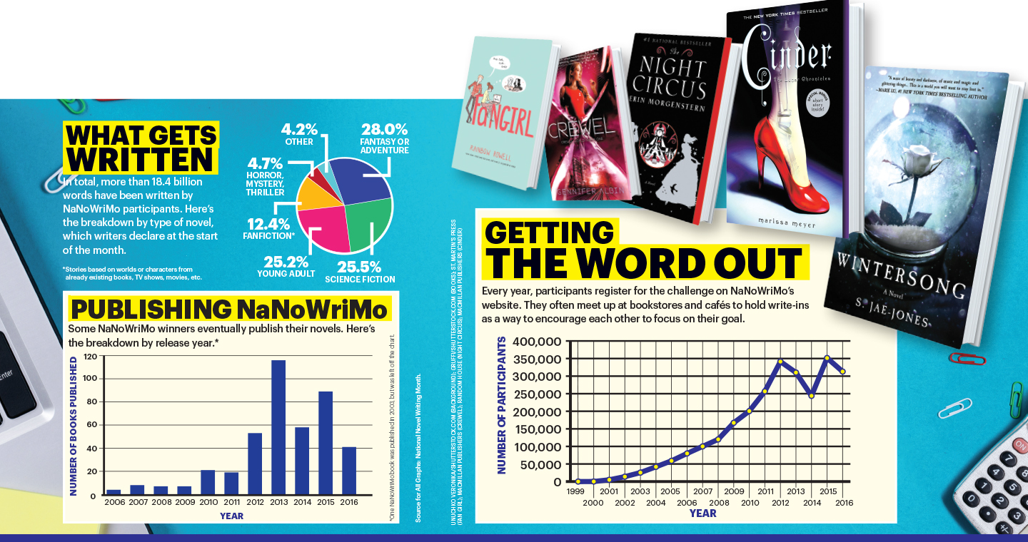 “Whether your first draft takes you 30 days or 30 years, it’s going to be the same,” says Marya Brennan. She’s the director of NaNoWriMo’s Young Writer’s Program, which supports the more than 60,000 student participants in K through 12 each year. “NaNoWriMo is your chance to find an idea you really care about and dedicate yourself and your imagination to it for the month,” says Brennan.