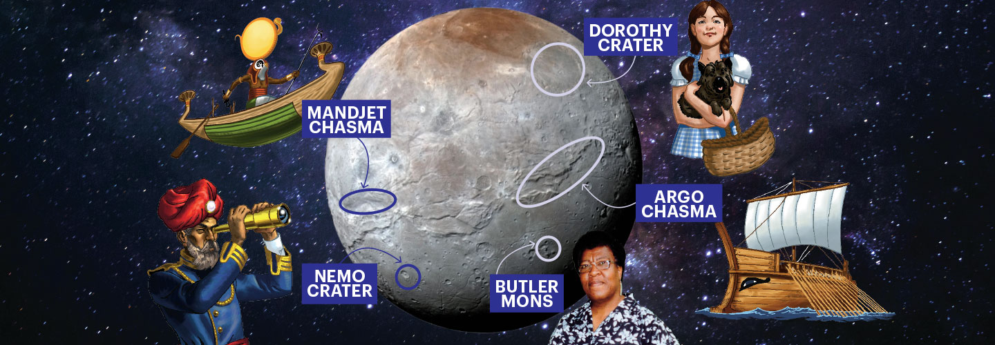 Want to visit Dorothy Crater? You won’t find it in Kansas. It’s on Charon, Pluto’s largest moon. Dorothy Crater is one of 12 features on Charon that received official names earlier this year.