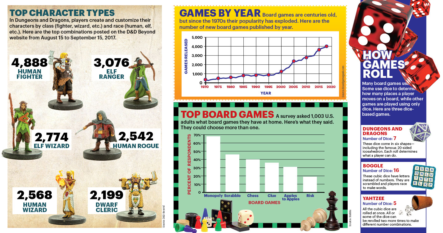 The adventure role-playing game was first published in 1974. Since then, tabletop games, which include D&D and all board games—from classics like Clue to modern ones like Settlers of Catan—have soared in popularity. D&D has also been featured in popular media, such as the Netflix show Stranger Things. That’s how Holden learned about the game two years ago.