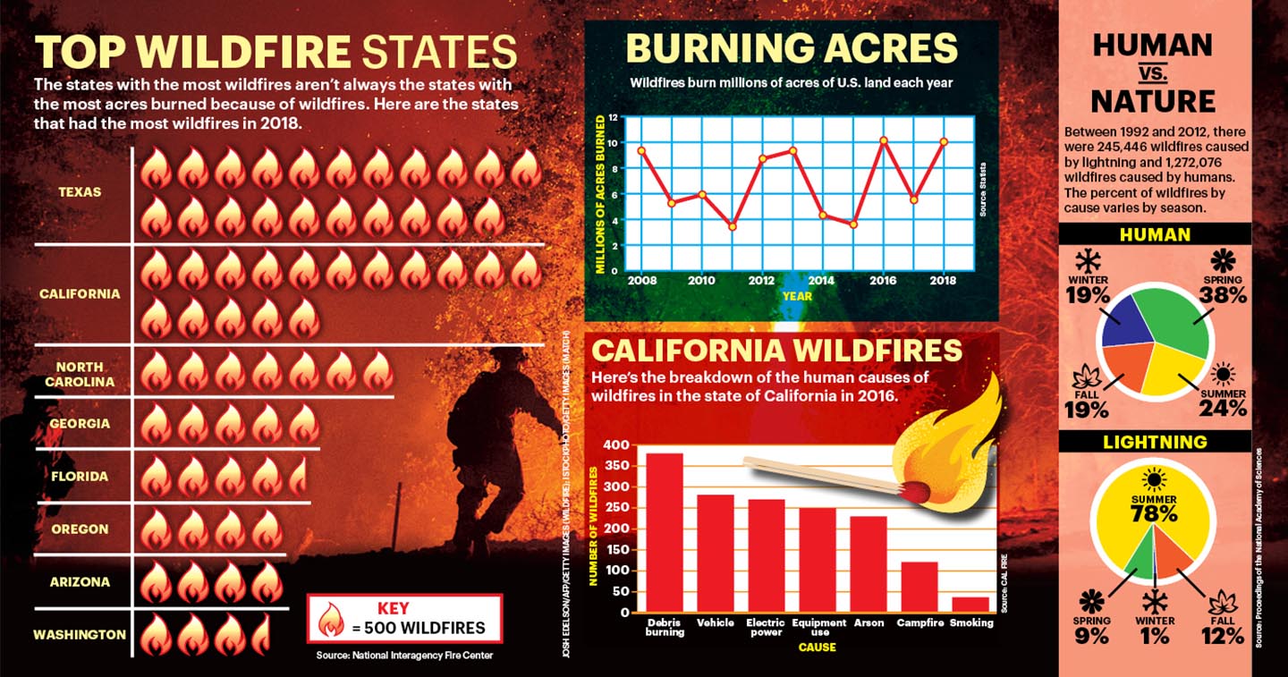Josh Edelson/AFP/Getty Images (Wildfire); iStockPhoto/Getty Images (Match)