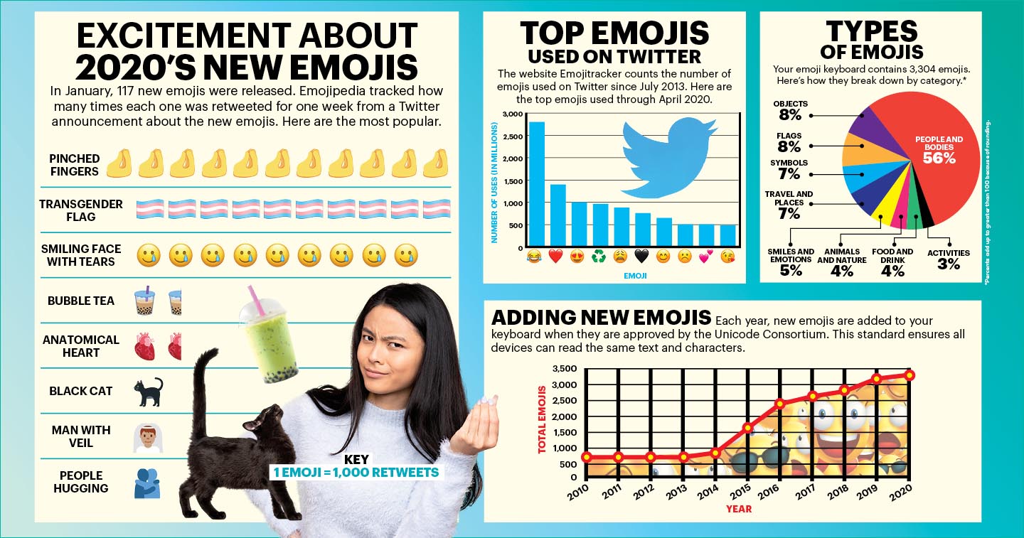 Have you ever wondered where new emojis come from? A nonprofit organization called the Unicode Consortium, which is made up of people from big tech companies, manages them. Every year, Consortium members meet to review proposals for new emojis. They decide which will get added to your smartphone, tablet, and computer keyboards. The decision is based on factors such as if the emojis are easily recognizable and useful for communication. Earlier this year, 117 new emojis were approved, including